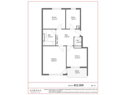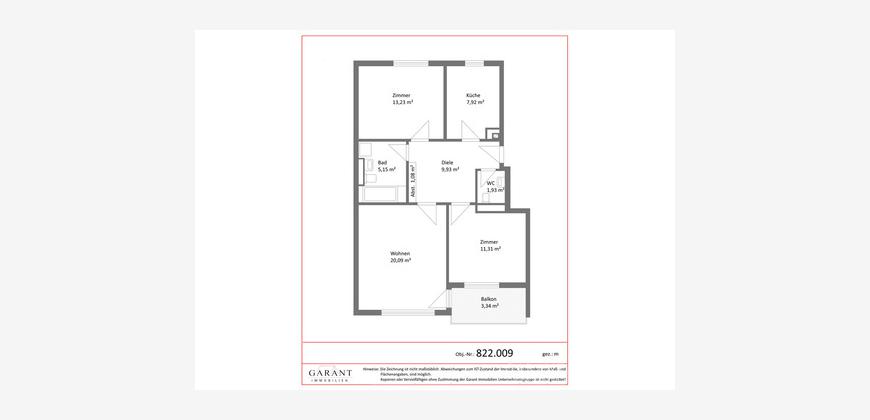 * Klar strukturierter Grundriss mit drei Zimmern,