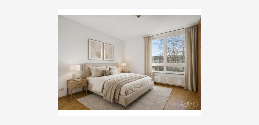 Die Wohnung überzeugt durch einen klar strukturierten Grundriss mit zwei Schlafzimmern, separater Küche, Bad sowie zusätzlichem Gäste-WC. Vom Wohn-/Esszimmer aus geht es auf die sonnige Loggia, die einen angenehmen Rückzugsort für entspannte Momente im Freien schafft. Das Gebäude aus dem Jahr 1989 präsentiert sich solide und wurde im Rahmen umfassender Instandhaltungsmaßnahmen, insbesondere an Fassade und Wärmedämmung nachhaltig modernisiert.