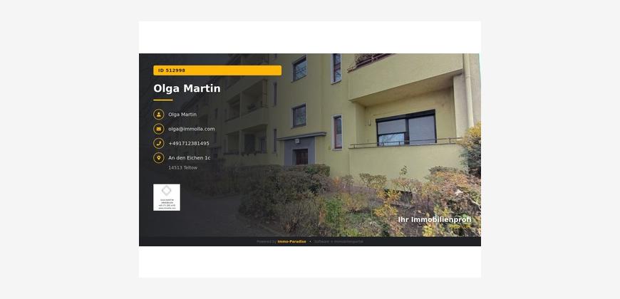 SonstigesDieses Angebot ist für Sie als Käufer provisionspflichtig. Die Käufercourtage in Höhe von 3,57 % des Kaufpreises inklusive 19% Mehrwertsteuer ist bei notariellem Vertragsabschluss verdient und fällig. In gleicher Höhe werden wir auch vom Verkäufer vergütet. Zahlbar nach notarieller Beurkundung an Olga Martin Immobilien. Die Grunderwerbsteuer, Notar- und Grundbuchkosten sind vom Käufer zu tragen.