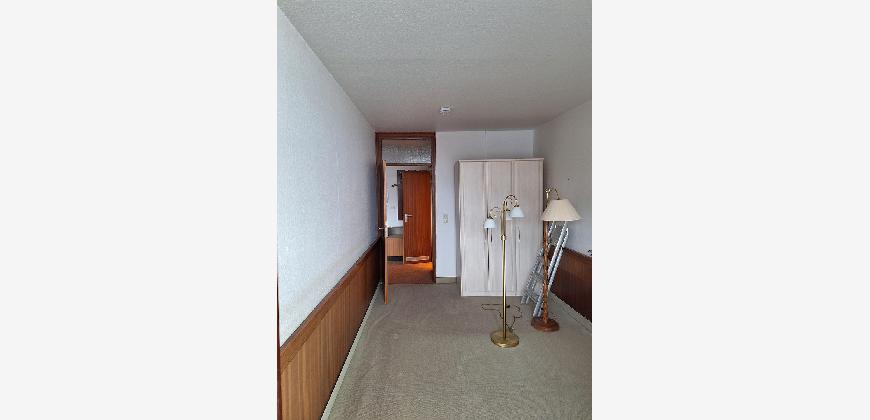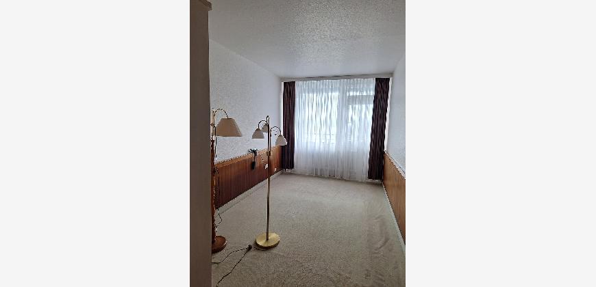 Der Teppichboden in den beiden Zimmern sowie im Flur wird auf jeden Fall gegen einen neuen Laminatboden ausgewechselt. Sämtliche Räume werden auf Wunsch des Mieters weiß gestrichen. Das gilt auch für die umläufigen Holzverkleidungen im Schlaf- und Wohnzimmer sowie für den Einbauschrank im Flur.