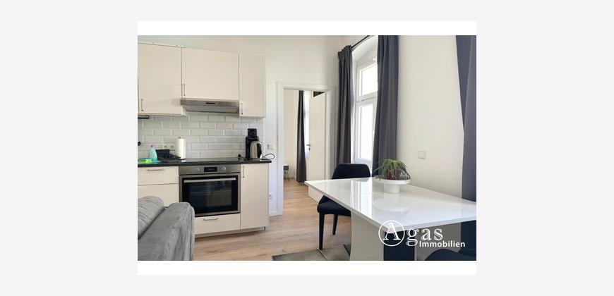 Willkommen in Ihrem neuen Zuhause. Diese komplett ausgestattete und geschmackvolle 2-Zimmer-Wohnung bietet auf ca. 38,81 m² alles, was man für ein komfortables, urbanes Leben braucht: eine moderne Einbauküche mit allen Geräten, ein stilvoll eingerichteter Wohn- und Schlafbereich, ein gefliestes Duschbad sowie eine eigene Waschmaschine. Die Wohnung liegt angenehm ruhig im Hinterhaus eines gepflegten Altbaus.