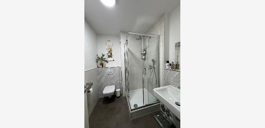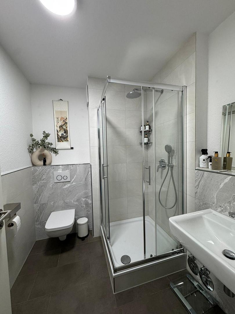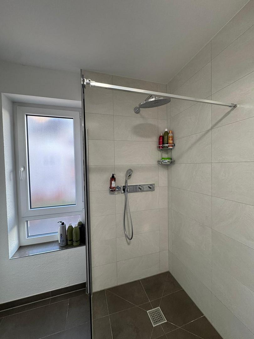 Bodengleiche Dusche mit einer Badewanne sowie zusätzlich ein Gästebad mit WC und Dusche