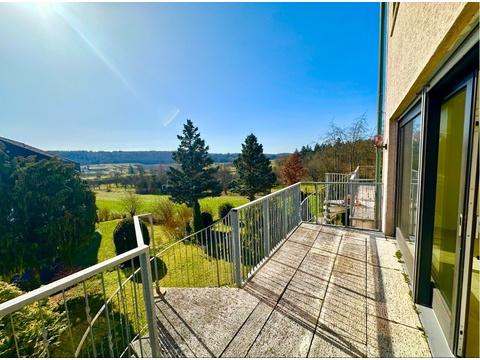Im Erdgeschoss erwartet Sie neben dem Eingangsbereich und einem praktischen Gäste-WC die Küche sowie der großzügige Wohn- und Essbereich, der als Herzstück des Hauses überzeugt. Vom Wohnbereich aus gelangen Sie auf den sonnigen Süd-Balkon mit schönem Weitblick in die ländliche Umgebung, von dem aus zudem ein Zugang in den Garten möglich ist. Balkon und Garten laden dazu ein, sonnige Stunden in ruhiger und entspannter Atmosphäre zu genießen.