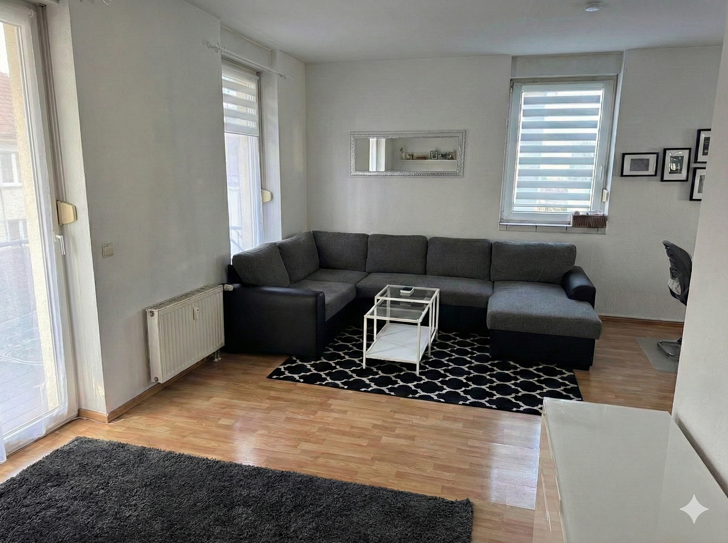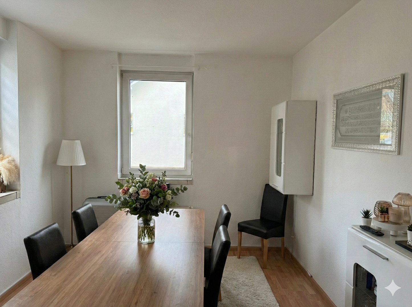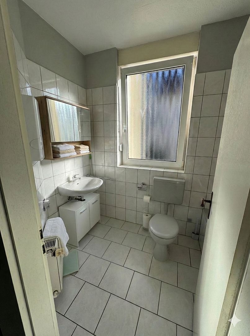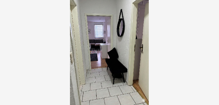 Die Wohnung präsentiert sich in einem gepflegten Zustand mit modernen Bodenbelägen in Holzoptik und zeitlosen Fliesen.