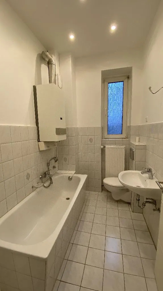 Renoviert, Dielenboden + Fliesen, abgehängte Decken mit Niedervoltbeleuchtung, Gastherme, Altbau mit hohen Decken, Tageslichtbad, Gegensprechanlage mit elektrischem Türöffner.