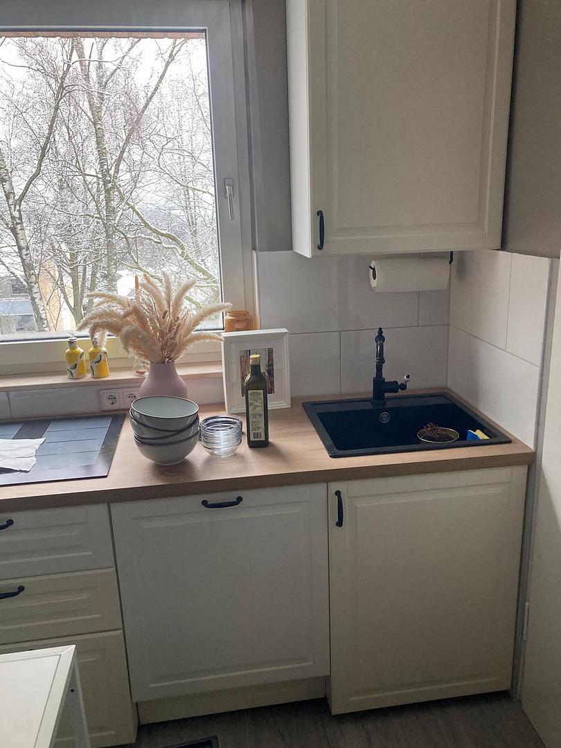 Küche kann nach Absprache inkl. Elektrogeräten (ohne Kühlschrank) übernommen/erworben werden.
