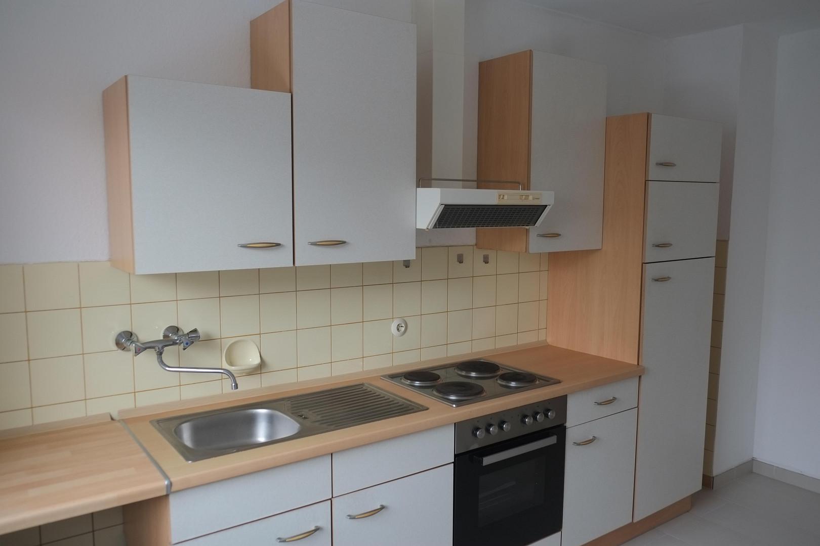 Der Waschmaschinenanschluss befindet sich in der Wohnküche (Lücke in der EBK).