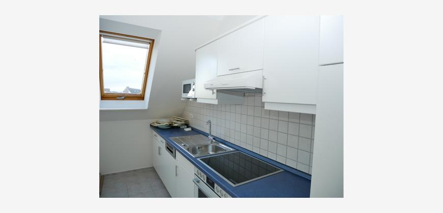 Die helle Wohnung überzeugt durch eine durchdachte Raumaufteilung und gute Lichtverhältnisse. Die Wohnung verfügt über drei Zimmer bei insgesamt ca. 86 m² Wohn- und Nutzfläche (reine Wohnfläche: 63 m²). Im unteren Bereich (4. OG) liegen die 2025 komplett erneuerte, weiß/blaue Einbauküche (ca. 7 m²), ein Vollbad mit Badewanne und Dusche (NEU 2025) (ca. 7 m²) sowie das großzügige, helle Wohnzimmer (ca. 29 m²) mit Südbalkon (ca. 4 m²). Alle Räume sind mit abgestimmtem Vinylboden (NEU 2025) ausgelegt. Über eine offene Treppe erreichen Sie die obere Ebene, die das 21 m² Schlafzimmer beherbergt.