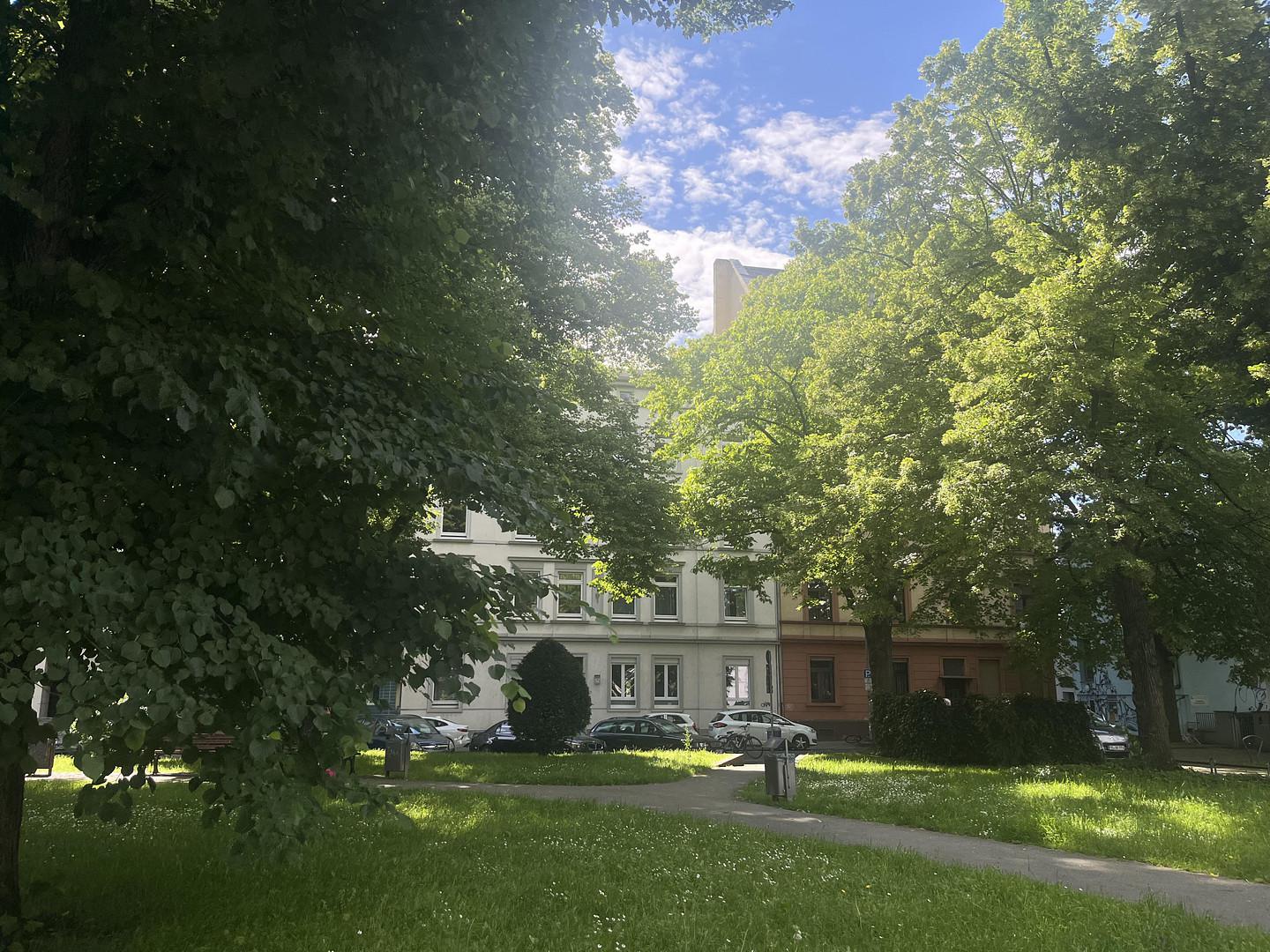 Das Objekt befindet sich in mitten in Alt-Sachsenhausen, mit unverbaubarem Blick in einen kleinen Park. Ein Besuch in einer