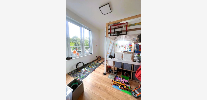Ein Kinder-/Gästezimmer mit eigenem Duschbad und einem Abstellraum ist vom Wohnbereich aus zu begehen.