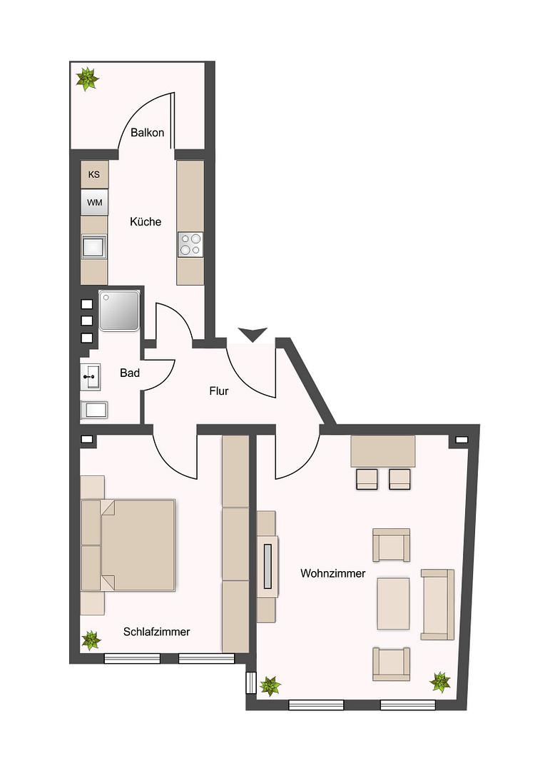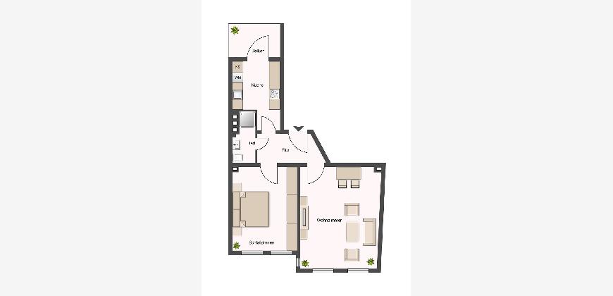 - Großes und helles Wohnzimmer sowie geräumiges Schlafzimmer
