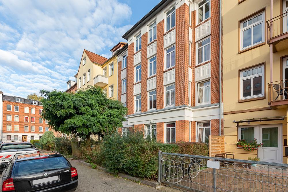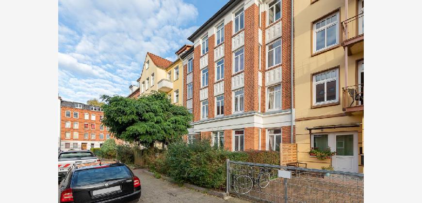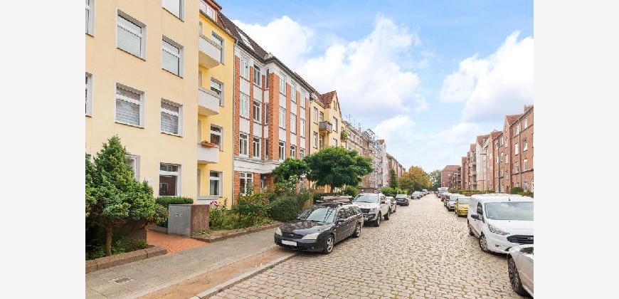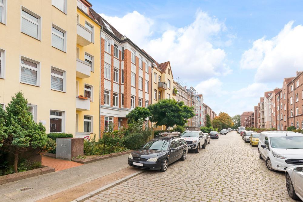 Die Wohnung befindet sich in einer ruhigen Nebenstraße mit Kopfsteinpflaster welche parallel zum Ostring verläuft. Parken kann man beidseitig bequem am Straßenrand. Der nahe liegende Ostring bietet eine sehr gute Verkehrsanbindung in Richtung der Kieler Innenstadt, den Ostufer-Stadtteilen und den Ostseebädern wie z.B. von Laboe und Heikendorf mit ihren schönen Stränden. Der gut getaktete öffentlichen Nahverkehr sichert eine schnelle Erreichbarkeit des jeweiligen Zielortes. Der Stadtteil Gaarden liegt im Kieler Osten und hat ca. 21.300 Einwohner. Alle Dinge des täglichen Bedarfs lassen sich problemlos hier erledigen: Ärzte, Apotheken, Supermärkte aller Art, Friseure sowie diverse Cafés und Restaurants bieten ein breit gefächertes Angebot. So bleibt einem meistens die Fahrt ins Kieler Zentrum und oder in andere Stadtteile erspart. Alle Schularten, Kitas und Sportvereine sind ebenfalls vorhanden. Als Kontrast zum quirligen Treiben bietet sich z.B. ein Spaziergang im nahe gelegenen Werftpark als ”grüner Oase” an, der fußläufig von der Wohnung aus erreichbar ist. Unweit liegt das modernisierte Schwimm-Freibad Katzheide und der Blaupark als Sport- und Freizeitplatz. Hier stehen Tennisplätze, ein Basketballfeld, verschiedene Spiel- und Turngeräte sowie einer Mehrzweckhalle für Vereinssport oder Veranstaltungen zur Verfügung.