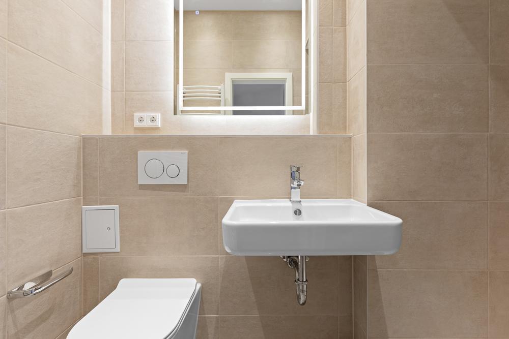 - Saniertes Badezimmer mit Regendusche und Handtuchheizkörper