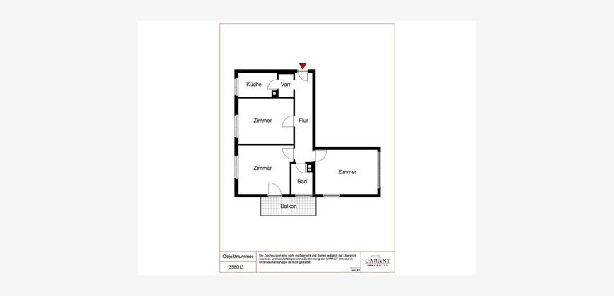 LagebeschreibungDie Wohnung befindet sich im 1. Obergeschoss in einem Mehrfamilienhaus mit 18 Einheiten.