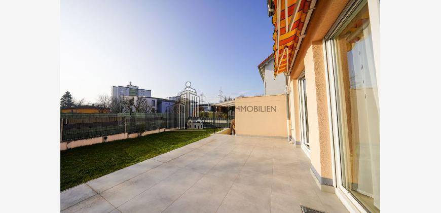 Ein weiteres Plus ist die Terrasse, die den Wohnraum in den Außenbereich erweitert und zu entspannten Stunden im Freien einlädt, sowie direkten Zugang zur Garage bietet. Das Grundstück umfasst ca. 183 m² und bietet damit eine angenehme Kombination aus pflegeleichter Fläche und privatem Außenbereich.