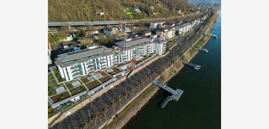 Diese außergewöhnliche 3-Zimmer-Wohnung erstreckt sich über ca. 154 m² Wohnfläche und vermittelt ein beeindruckendes Gefühl von Großzügigkeit und Freiheit. Die offene Raumwirkung in Verbindung mit dem unverbaubaren Blick auf den Rhein verleiht dem Zuhause eine besondere Ausstrahlung.