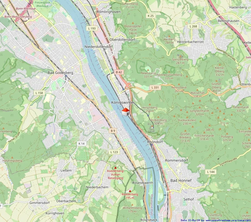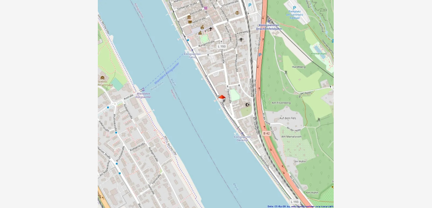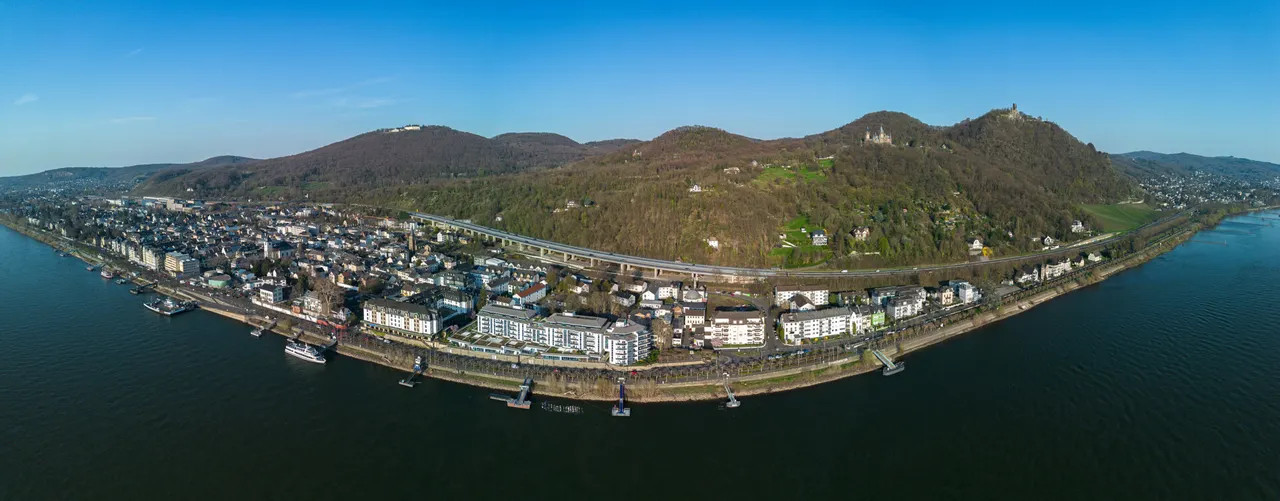 Die Immobilie liegt in direkter Rheinlage an der Rheinallee in Königswinter. Die Lage zeichnet sich insbesondere durch den unmittelbaren Bezug zum Rhein und die freie Sicht auf das Wasser aus.