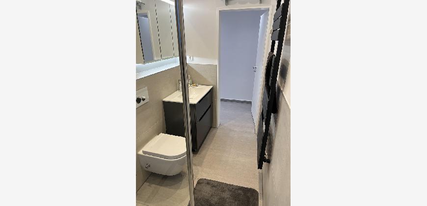 Moderne Deckenspots im Flur, im Bad sowie auf der Terrasse