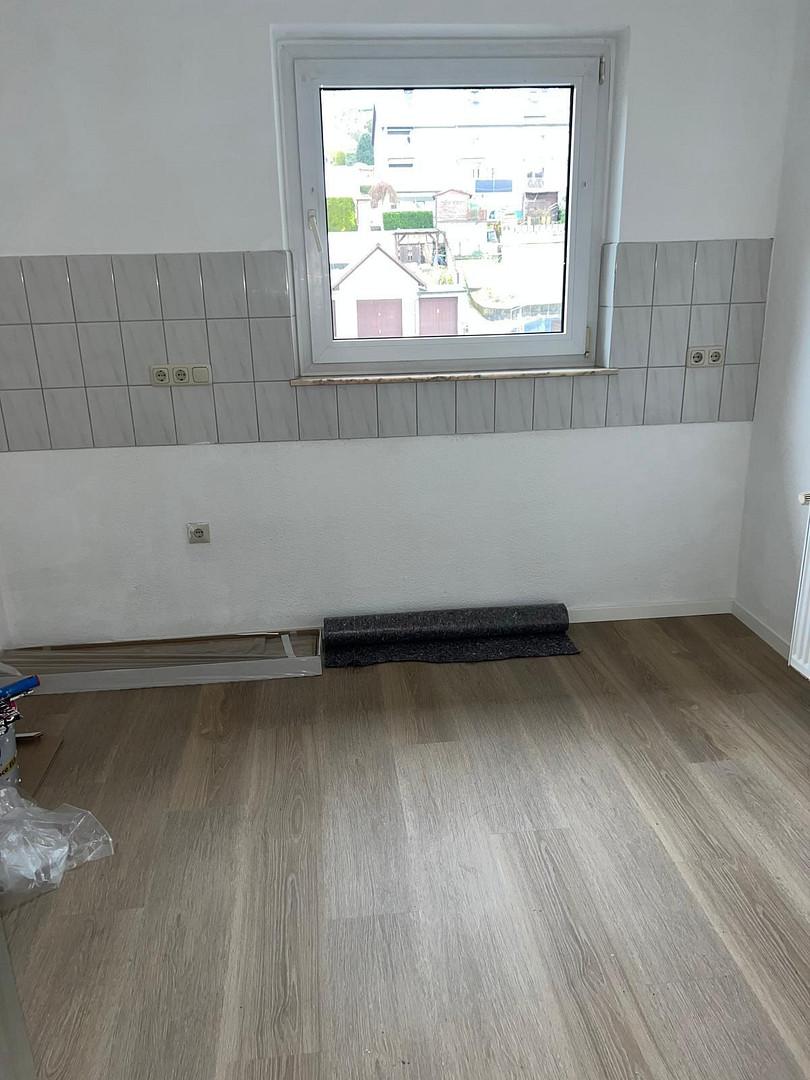 Neuer,pflegeleichter Fußboden. Wände frisch weiß gerollt.