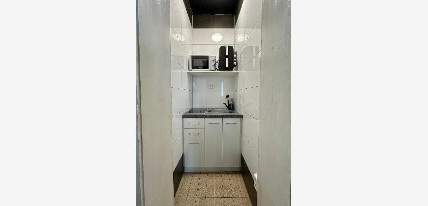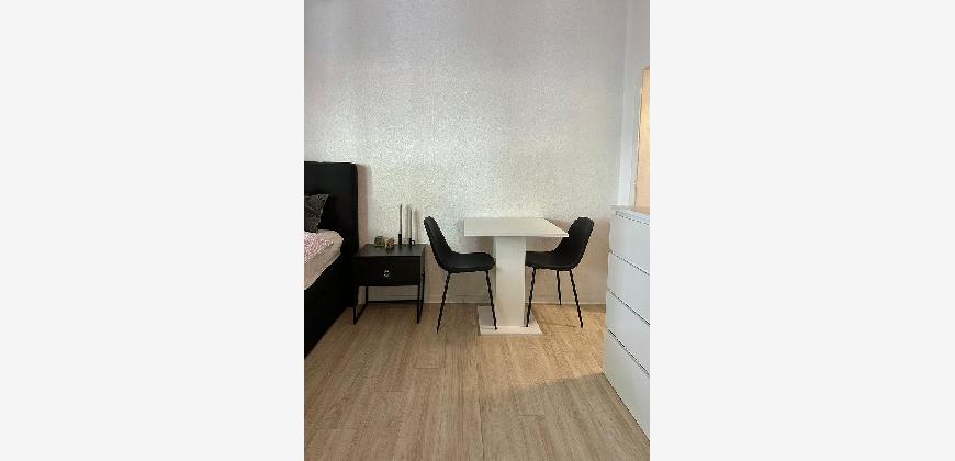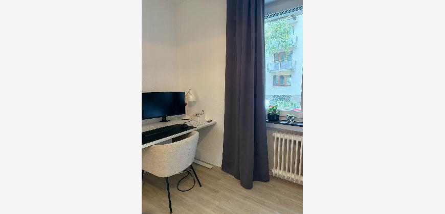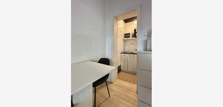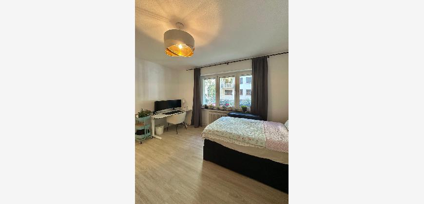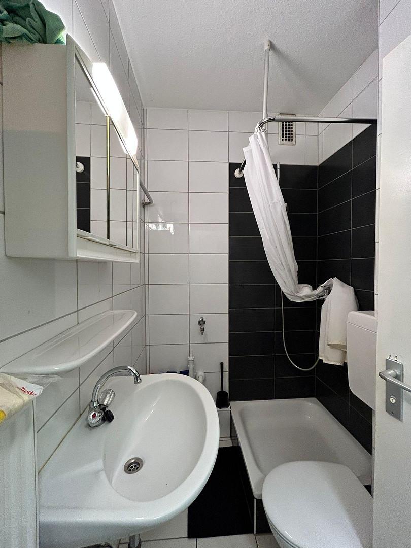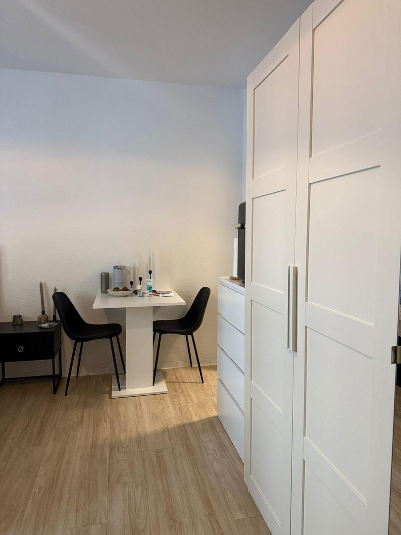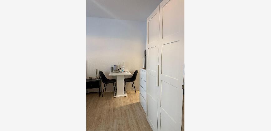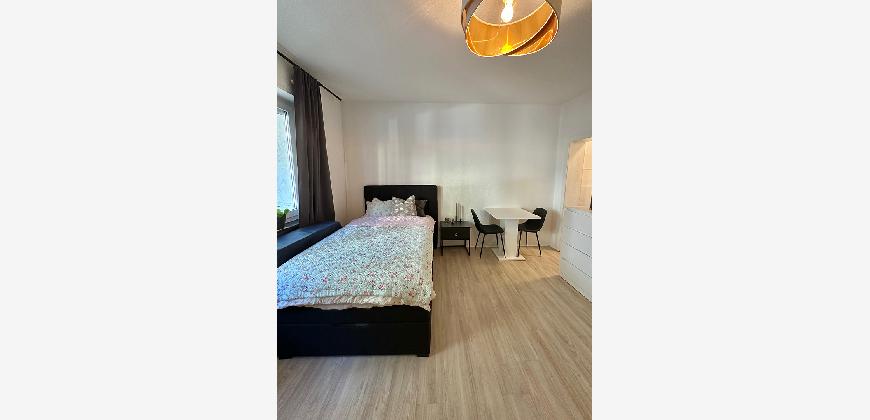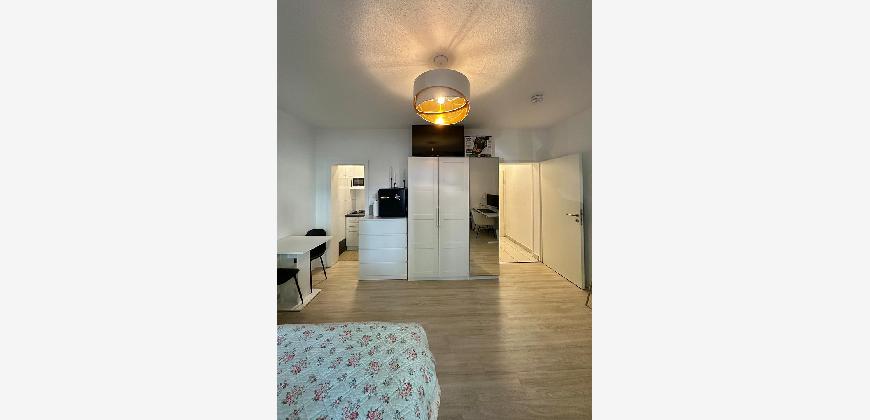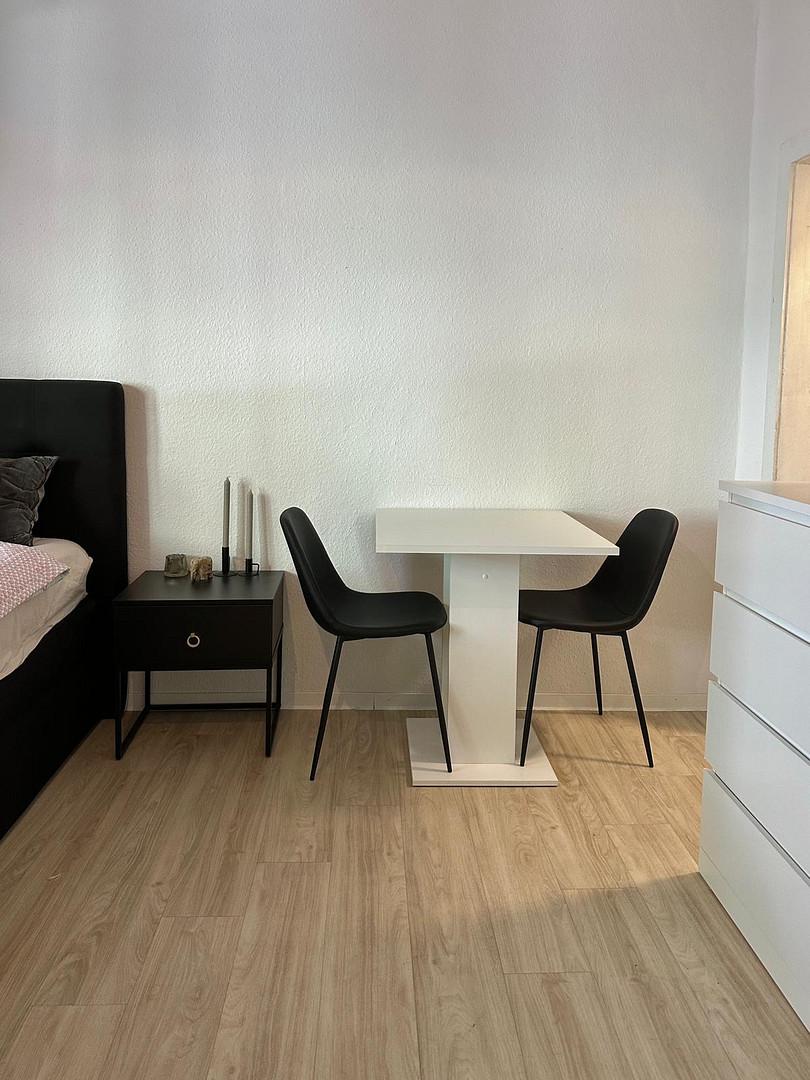 Die Wohnung wird komplett möbliert vermietet und bietet alles, was man für ein komfortables Leben benötigt: Ein gemütliches Boxspringbett, einen modernen Arbeitsplatz mit Schreibtisch, einen Essbereich, praktische Aufbewahrungsmöglichkeiten sowie eine kompakte Pantryküche inklusive Kochfeld, Geschirr, Besteck und Stauraum. Das stilvolle Badezimmer ist mit Dusche, weißen und dunklen Fliesen ausgestattet. Eine Waschmaschine ist im Badezimmer angeschlossen. Ein heller Laminatboden sorgt für eine freundliche Atmosphäre. Zusätzlich steht Ihnen schnelles Internet zur Verfügung, sodass Homeoffice oder Streaming problemlos möglich sind. Die Wohnung wird als All-Inklusive-Miete angeboten.