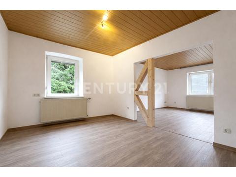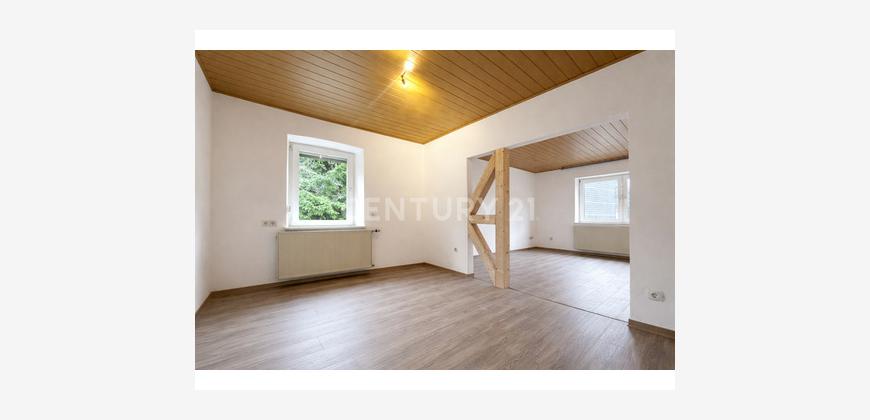 Im Obergeschoss wurden die Zimmer, Wände und Böden modern gestaltet – ein kleiner Balkon ergänzt das Raumangebot. Lediglich das Badezimmer im Obergeschoss ist noch sanierungsbedürftig und bietet Gestaltungsspielraum nach den eigenen Vorstellungen.