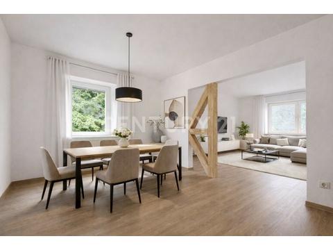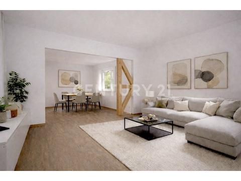 Auf ca. 150 m² Wohnfläche, verteilt auf zwei Etagen, bietet die Immobilie insgesamt sechs Zimmer, zwei Küchen und zwei Bäder. Das Haus wurde 2025 modernisiert und präsentiert sich bezugsfertig.