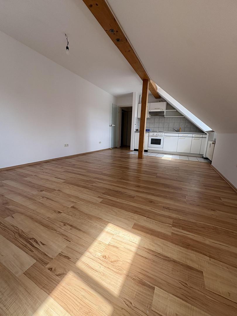 Die Wohnung ist modern und komfortabel ausgestattet. Der offene Wohn- und Essbereich mit integrierter Einbauküche schafft ein großzügiges Raumgefühl. Hochwertige Bodenbeläge in Holzoptik sorgen für eine warme Atmosphäre.