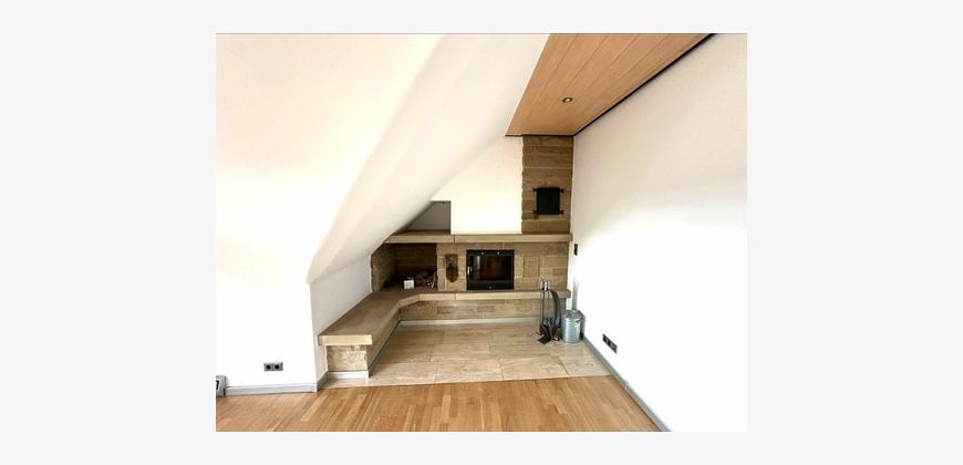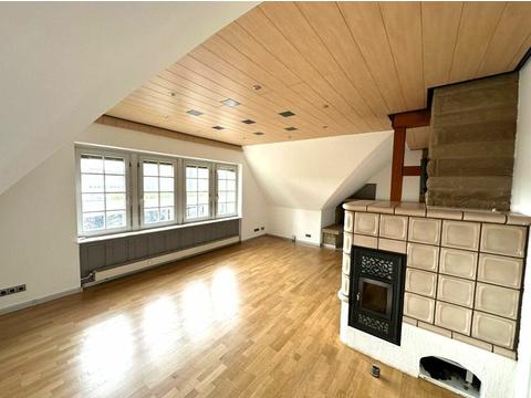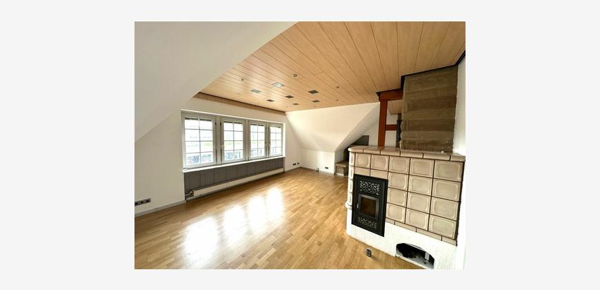 Mittelpunkt dieser schönen Wohnung ist das riesige Wohnzimmer mit toller Fensterfront, gemauertem Kaminofen und zusätzlichem Holzkamin mit toller Sitzecke.
