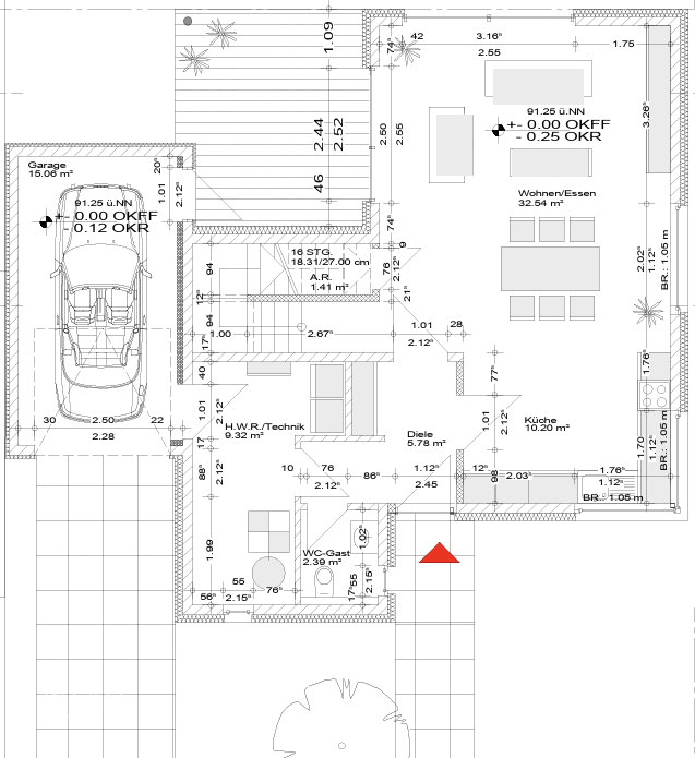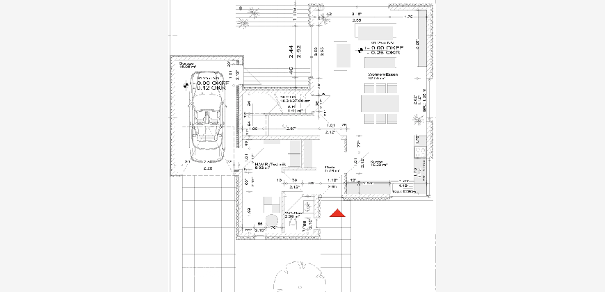 Beim Betreten dieses modernen Hauses aus dem Jahr 2025, das mit einer Energieeffizienzklasse A+ überzeugt, werden Sie von einem hellen und einladenden Eingangsbereich empfangen. Direkt zur Linken befindet sich das Gäste-WC, praktisch für Besucher und den täglichen Gebrauch. Hieran angrenzend befindet sich der Hauswirtschaftsraum mit Anschlüssen für Waschmaschine und Trockner und der Luftwasser-Wärmepumpe. Von hier aus gelangen Sie außerdem in die Garage.