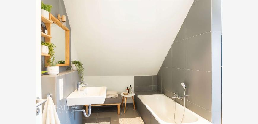 Das Hauptbadezimmer auf dieser Etage ist mit einer Badewanne, einer Dusche und modernen Armaturen ausgestattet, ideal für entspannende Momente nach einem langen Tag.