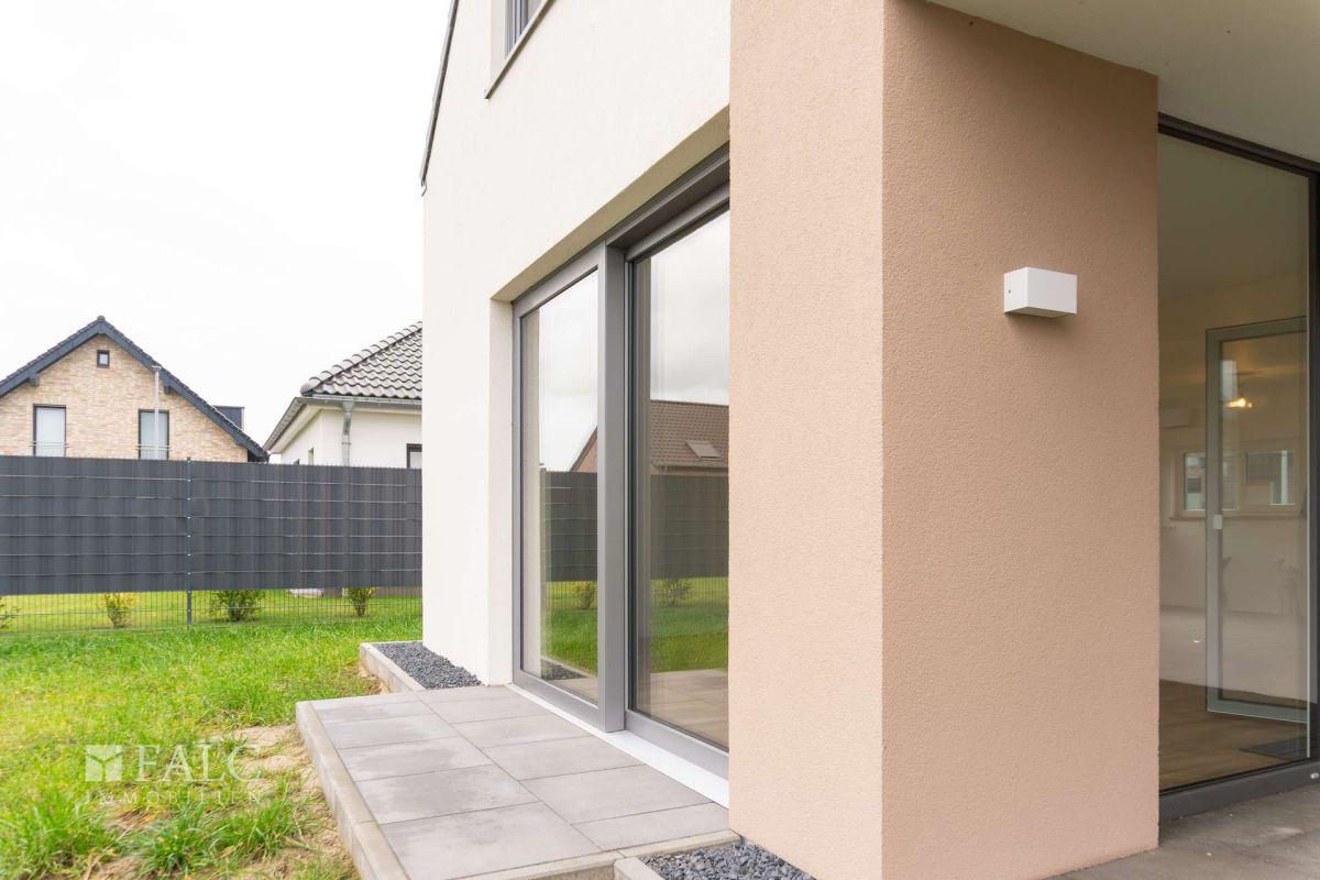 Zurück im Erdgeschoss, führt der Wohnbereich in einen zusätzlichen Abstellraum sowie direkt auf die Terrasse und den gepflegten Garten. Der Garten bietet ausreichend Platz für Freizeitaktivitäten und ist ein Paradies für Kinder zum Spielen.