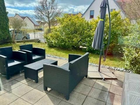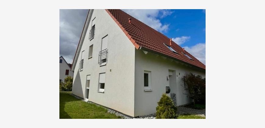 Diese moderne Doppelhaushälfte liegt im Neubaugebiet Auwald, am Rand von Röthlein. Dies ist reines Wohngebiet. Röthlein selbst verfügt über mehrere Einkaufmöglichkeiten und einen KIndergarten.