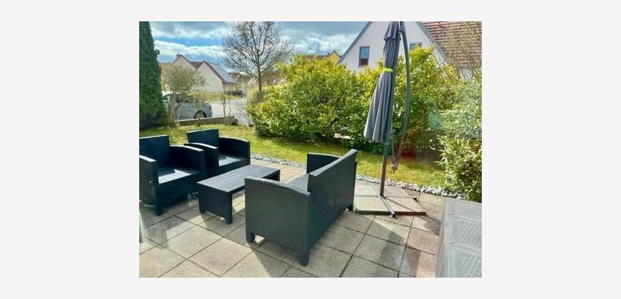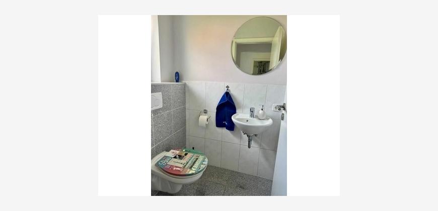 Das Haus hat eine hochwertige Ausstattung. Helle und lichtdurchflutete Räume schaffen ein angenehmes Wohnklima. Die Küche ist voll eingerichtet (bis auf den Kühlschrank) und sollte für 800,- Euro abgelöst werden. Das Bad verfügt sowohl über eine Badewanne, als auch über eine Echtglasdusche. Hier gibt es sogar Fußbodenheizung. Überall sind die Räume mit hochwertigen Fliesen ausgestattet. Der Garten ist von einem Landschaftsgärtner pflegeleicht angelegt und dank seiner Größe arbeitstechnisch überschaubar. Da es keinen Keller gibt, verfügt es über einen Hauswirtschaftsraum und mehrere Abstellräume. Im Außenbereich hat man zusätzlich die Möglichkeit Fahrräder, Winterreifen und andere sperrige Gegenstände unterzubringen. Außerdem gehört zum Haus eine Garage mit elektrischem Sektionaltor, sowie der Stellplatz davor. Die Nachbarschaft ist sehr ruhig. Die Eigentümner wünschen sich ruhige und solvente Mieter. Hundehaltung ist leider nicht erlaubt!
