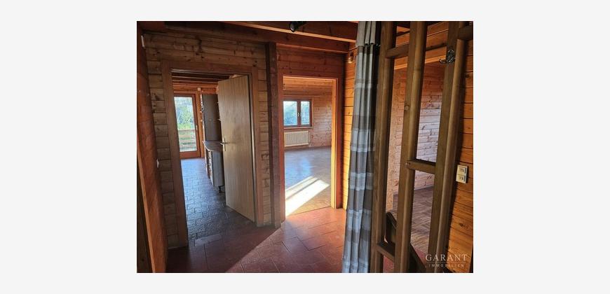 Dem Blockhaus nachempfunden wurde dieses Haus im Erd- und Dachgeschoss im Landhausstil errichtet.