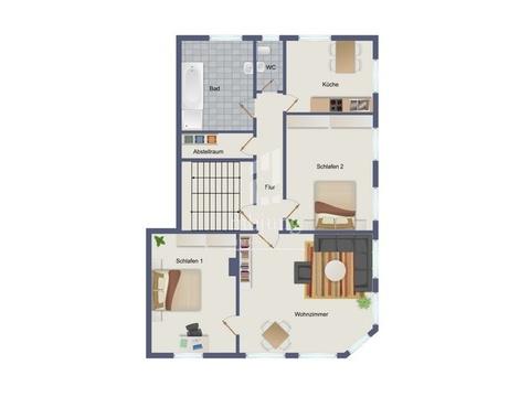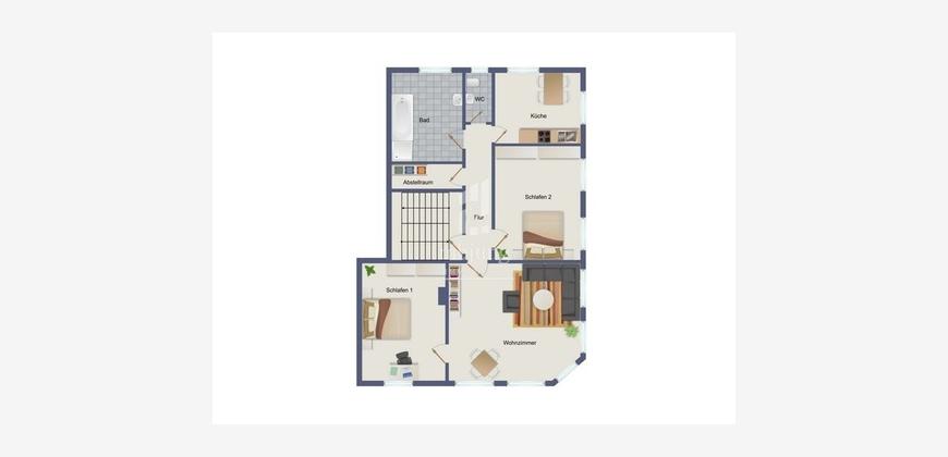 3 Zimmer, Küche, Bad, WC, Flur, Abstellraum
