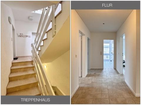- Bodenbeläge: Helle Fliesen; Laminat im großen Schlafzimmer
