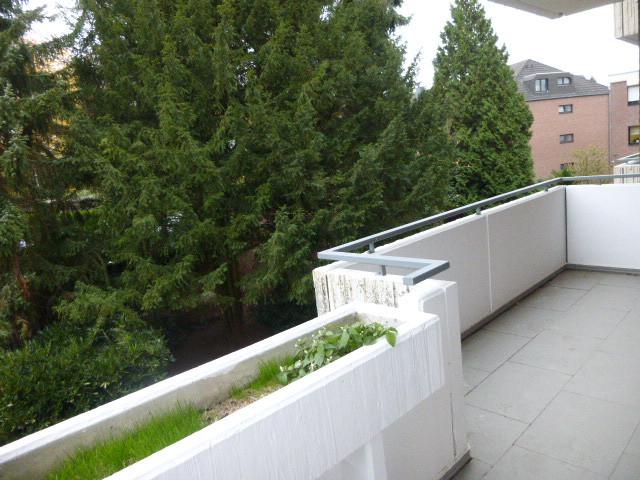 Der ca. 10 m² große Balkon (mit Abstellraum) liegt ruhig nach hinten mit Blick ins Grüne.