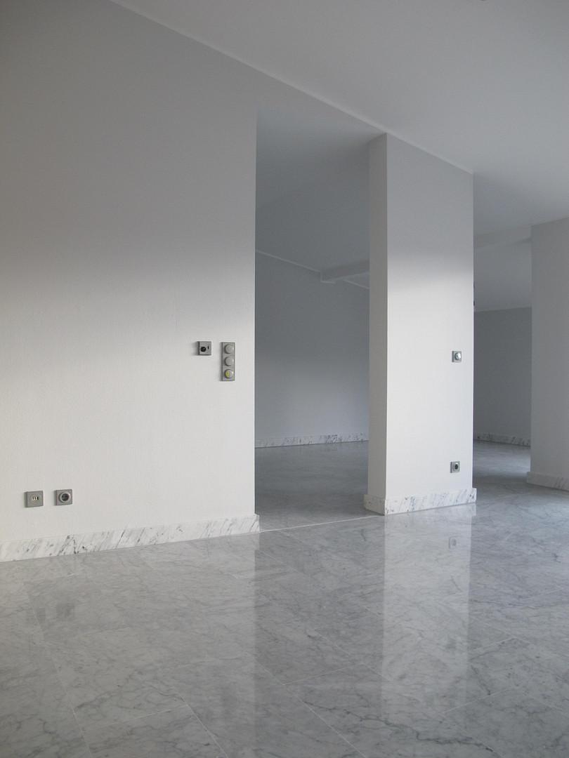 • Zeitloser weißer Carrara-Marmor als Bodenbelag