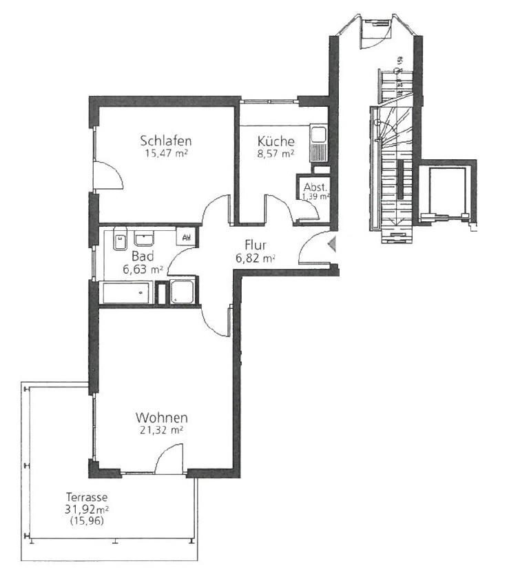 Eine separate Küche und ein zusätzlicher Abstellraum in der Wohnung runden das Angebot ab.Lage