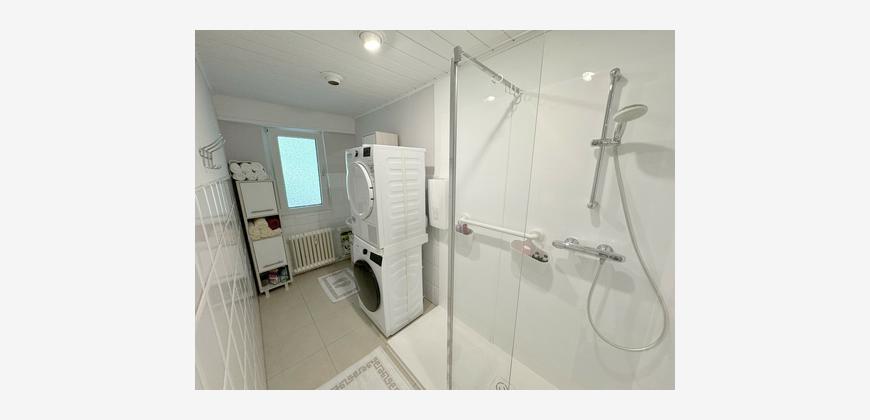 Besonderer Komfort wird durch zwei Badezimmer geboten. Ein Lift sichert einen bequemen Zugang zur Wohnung und ein eigener Kellerraum bietet zusätzlichen Stauraum.