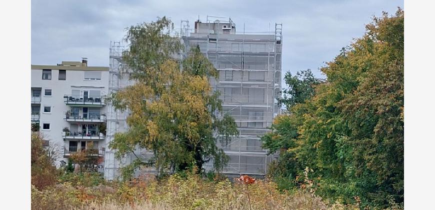Das Haus wird aktuell neu sanierte: In den letzten Wochen wurde ein nagelneuer Fahrstuhl eingebaut, die Balkone komplett saniert und die Fassade erhielt einen neuen Farbanstrich.
