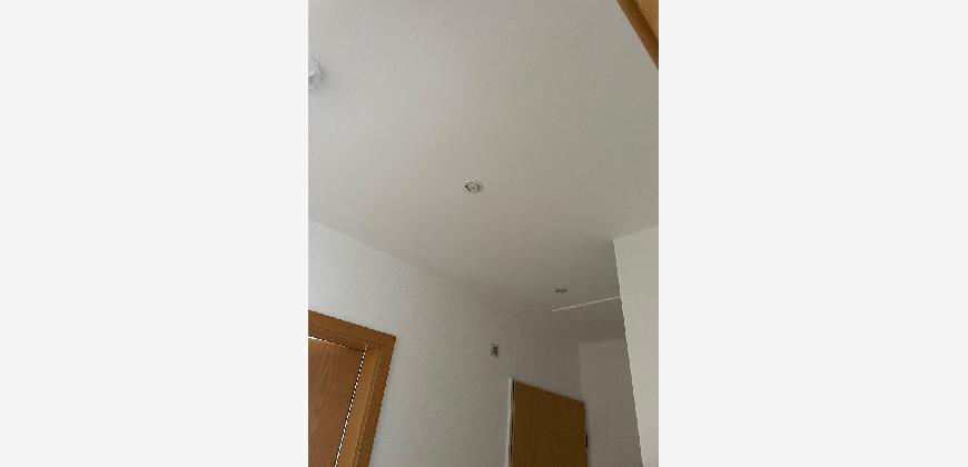 Der Bodenbelag der Wohnung besteht aus Stäbchenparkett und Fliesen im Badezimmer und in der Küche. Die Dachfenster sind gut isolierte Veluxfenster mit Wärmeschutzrollos.