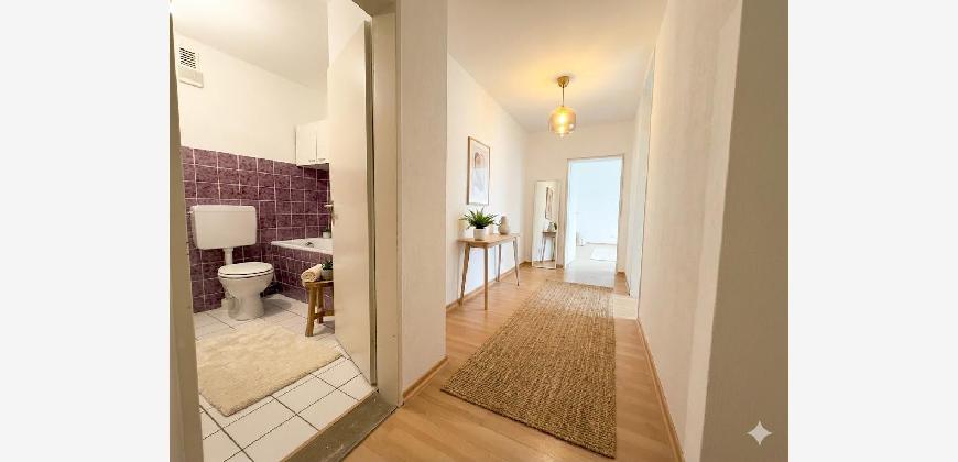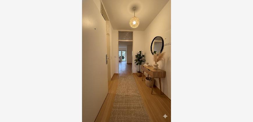 Die Wohnung wurde renoviert und vermittelt durch die modernen Böden, die hellen Räume und den offenen Grundriss eine angenehme Wohnqualität. Ein besonderes Highlight ist der direkte Zugang zur eigenen Terrasse und dem kleinen Garten, der den Wohnraum ideal nach draußen erweitert. Die Kombination aus Badewanne und separater Dusche im Badezimmer sorgt für maximale Flexibilität im Alltag. Ein zusätzlicher Abstellraum bietet wertvollen Platz für Haushaltsgeräte und Vorräte. Das Gäste-WC im Eingangsbereich erhöht den Komfort für Besucher und strukturiert gleichzeitig den privaten und den öffentlichen Bereich der Wohnung. Eine praktische Küchenlage, der offene Wohn- und Essbereich sowie zwei Schlafräume machen diese Wohnung vielseitig und lebendig. Zwei Stellplätze und ein eigener Kellerraum runden das Angebot ab.
