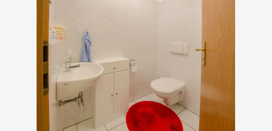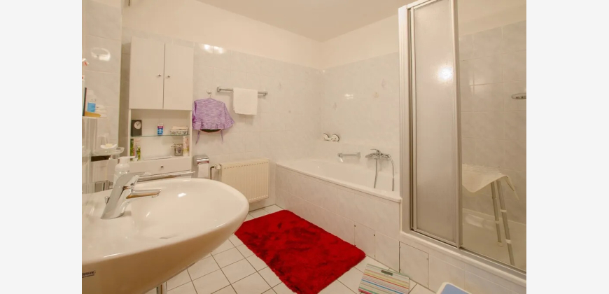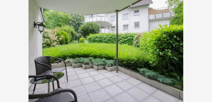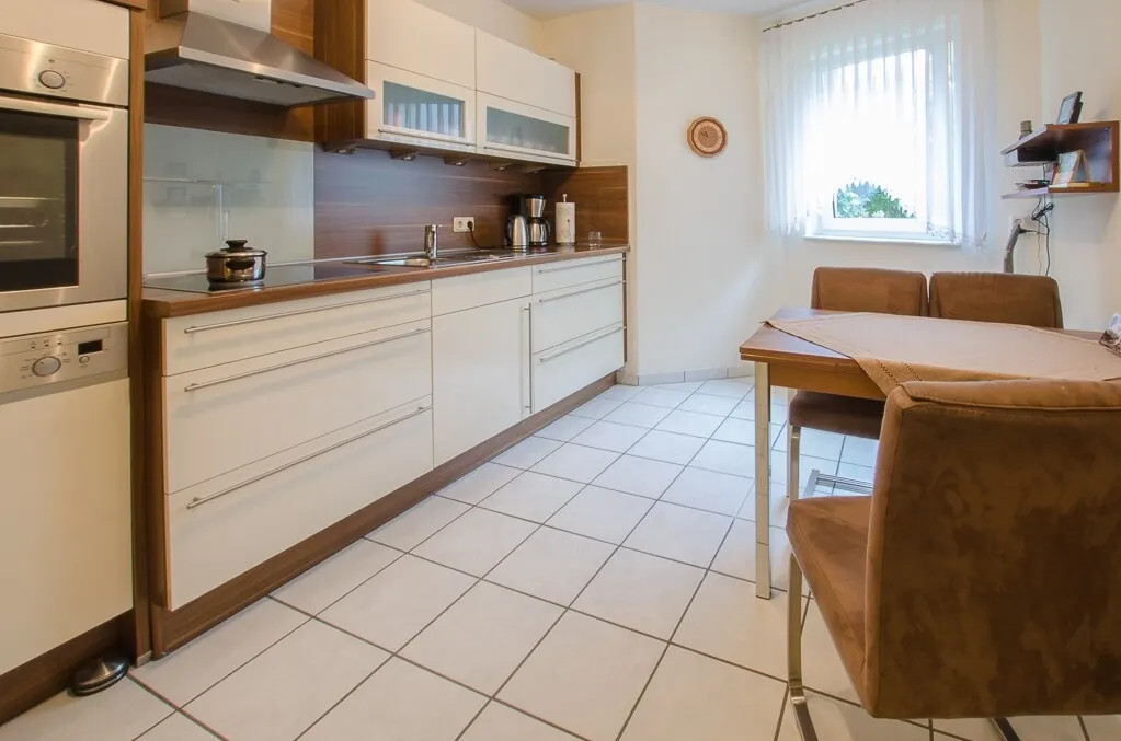 Die Wohnung verfügt über einen gut geschnittenen Flur von dem Sie Zutritt in das Gäste-WC und Abstellraum haben, sowie in die Küche. Diese bietet genug Platz zum arbeiten und verweilen. Das Schlafzimmer ist großzügig geschnitten und das Badezimmer schließt sich direkt an. Dieses verfügt über eine Badewanne und Dusche. Das große Wohnzimmer bietet Blick auf die Terrasse und ins Grüne. Die Bodenbeläge in der Wohnung variieren zwischen Parkett und Fliesen. Die Sanitärräume sind hell und zeitlos ausgestattet. Zu der Wohnung gehört ein Kellerraum und ein Pkw-Tiefgaragenstellplatz, diese sind über den Fahrstuhl zu erreichen. Ebenso die Waschküche und der Trockenraum.