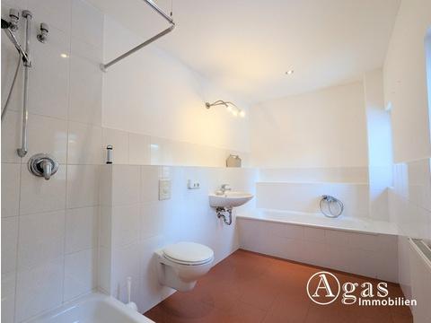 Ein großzügiges Tageslichtbad, ausgestattet mit Badewanne, Dusche, WC und Handwaschbecken vervollständigt, das Obergeschoss.