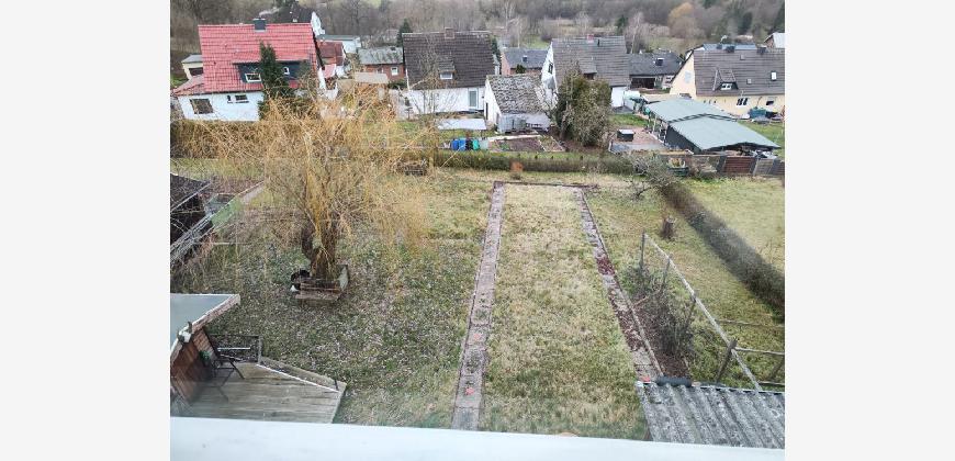 Eine überdachte Terrasse ermöglicht ein wetterunabhängiges Würstchen-Grillen, während auf dem Grundstück noch ein Gartenhaus genutzt werden kann.