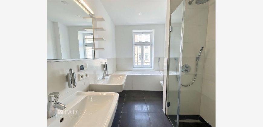 Die Wohnung überzeugt durch eine durchdachte Raumaufteilung sowie helle, freundliche Wohnräume. Eine gehobene Ausstattung mit ausgewählten Materialien schafft ein stilvolles und angenehmes Wohnambiente. Im Rahmen der Sanierung wurden unter anderem die Elektrik, die Sanitärbereiche, Bodenbeläge sowie Wand- und Deckenflächen vollständig erneuert.