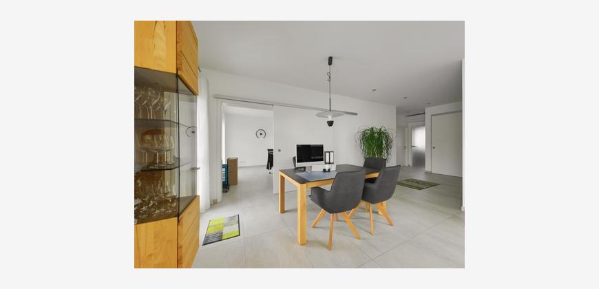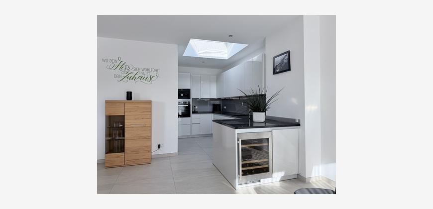 Die Küche ist mit einer hochwertigen Einbauküche, inkl. Weinkühlschrank ausgestattet und ist dank dem Oberlicht auch an trüben Tagen angenehm hell. Eine Vorratskammer gibt es selbstverständlich auch.