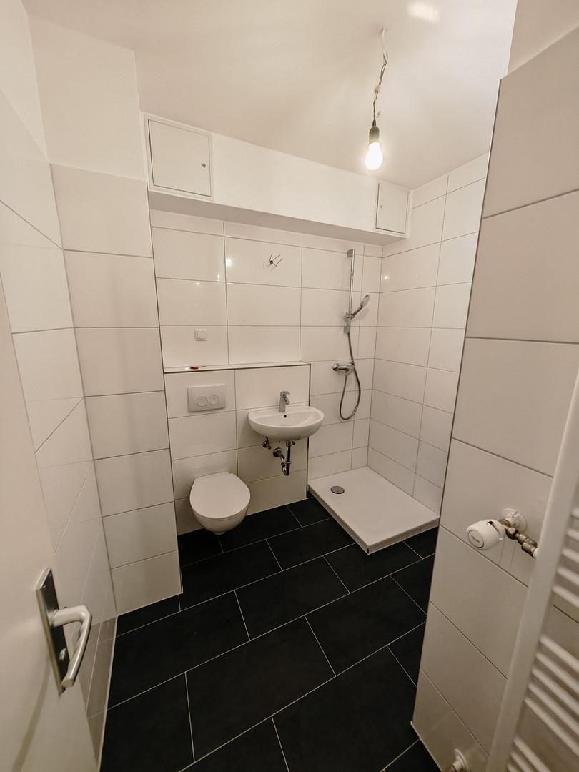 - schickes Bad mit Dusche und Stellplatz für Waschmaschine