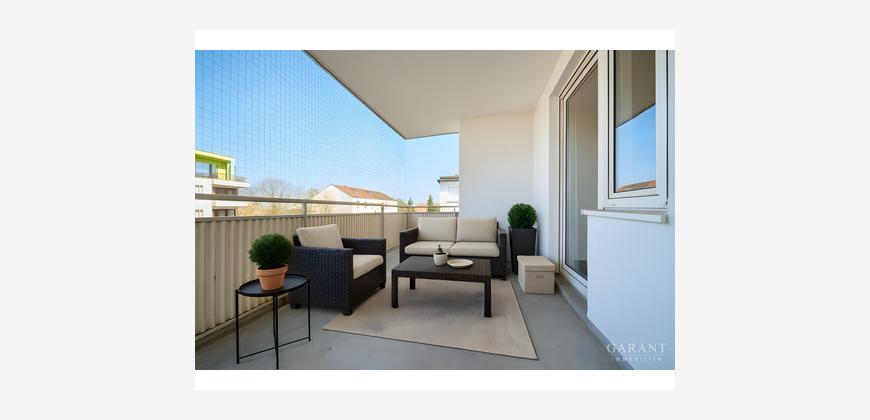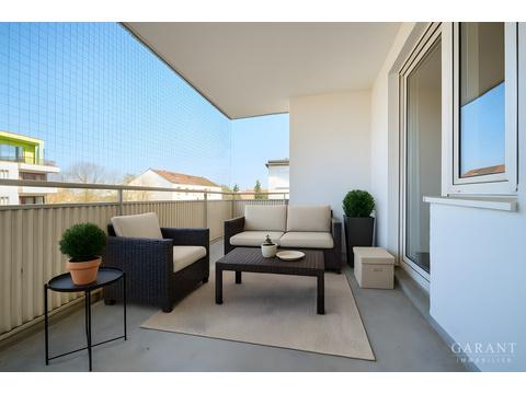 * Geräumiger Balkon mit Westausrichtung und Außensteckdose